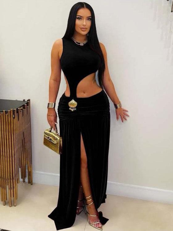 Ruched Hollow-out Split Hem Maxi Dress