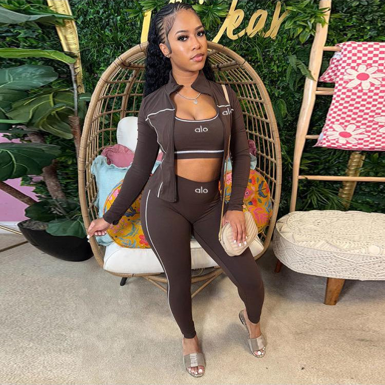 women’s Striped Trim Tank Coats Pant 3 Piece Sets